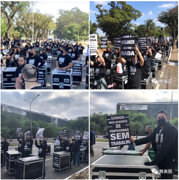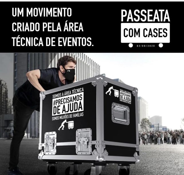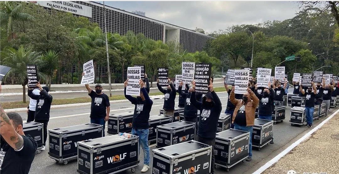 8月2日,巴西圣保罗的数千名行业从业者,推着航空箱走上了街头,发起了一次行业技术人员的游行活动。该活动由数以万计的从业人员从互联网发起倡议,巴西多家演出、设备租赁机构参与。该活动是一项合法的和平举动,并按照世卫组织的安全标准,进行必要的安全防护措施。参加游行人员通过活动网站进行报名,活动于当地时间8时开始,参与者按照要求保持1.5M的距离,按照规定的路线行进,持规定标语,合理的表达诉求。